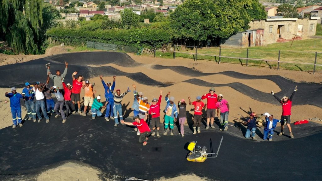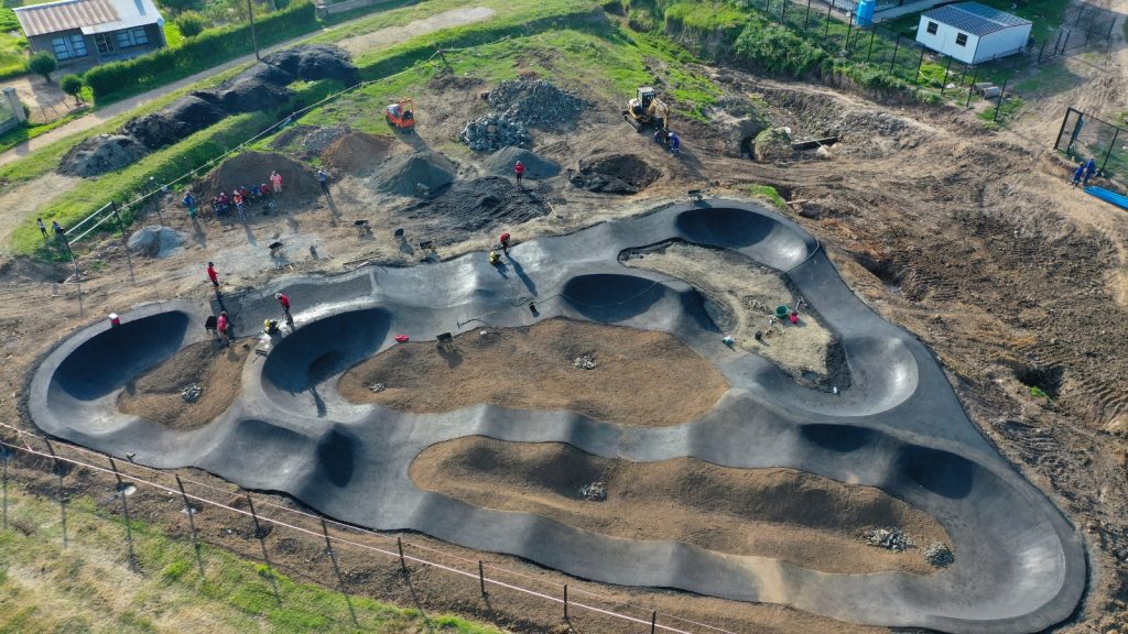 es čia esame, kad pastatyti du projektus. Iš esmės – žemės darbai ir asfaltavimas. Šitų dviejų projektų biudžetas suneštas įvairių įmonų, vietos institucijų, partnerių iš Europos... trumpai – visi susimetė, kad tai įvyktų, nes viešos sporto ar laisvalaikio infrastruktūros jiems ten labai trūksta, o vaikų jie čia turi begalybę.