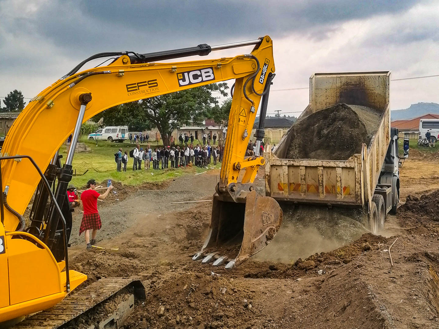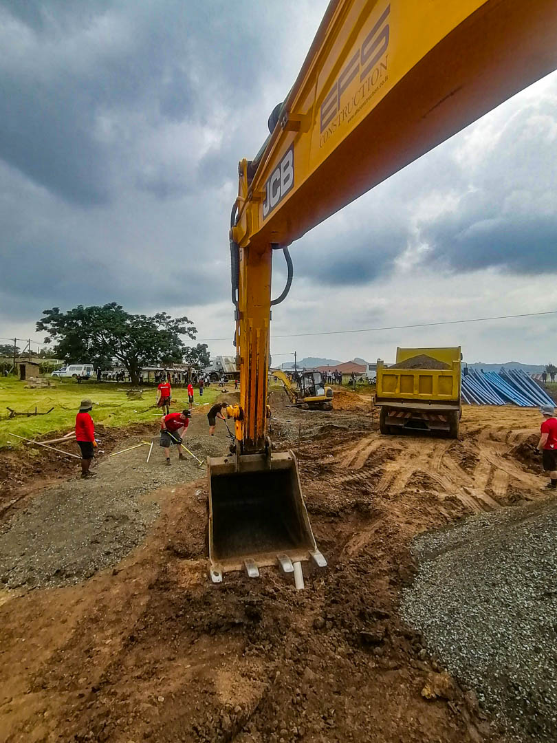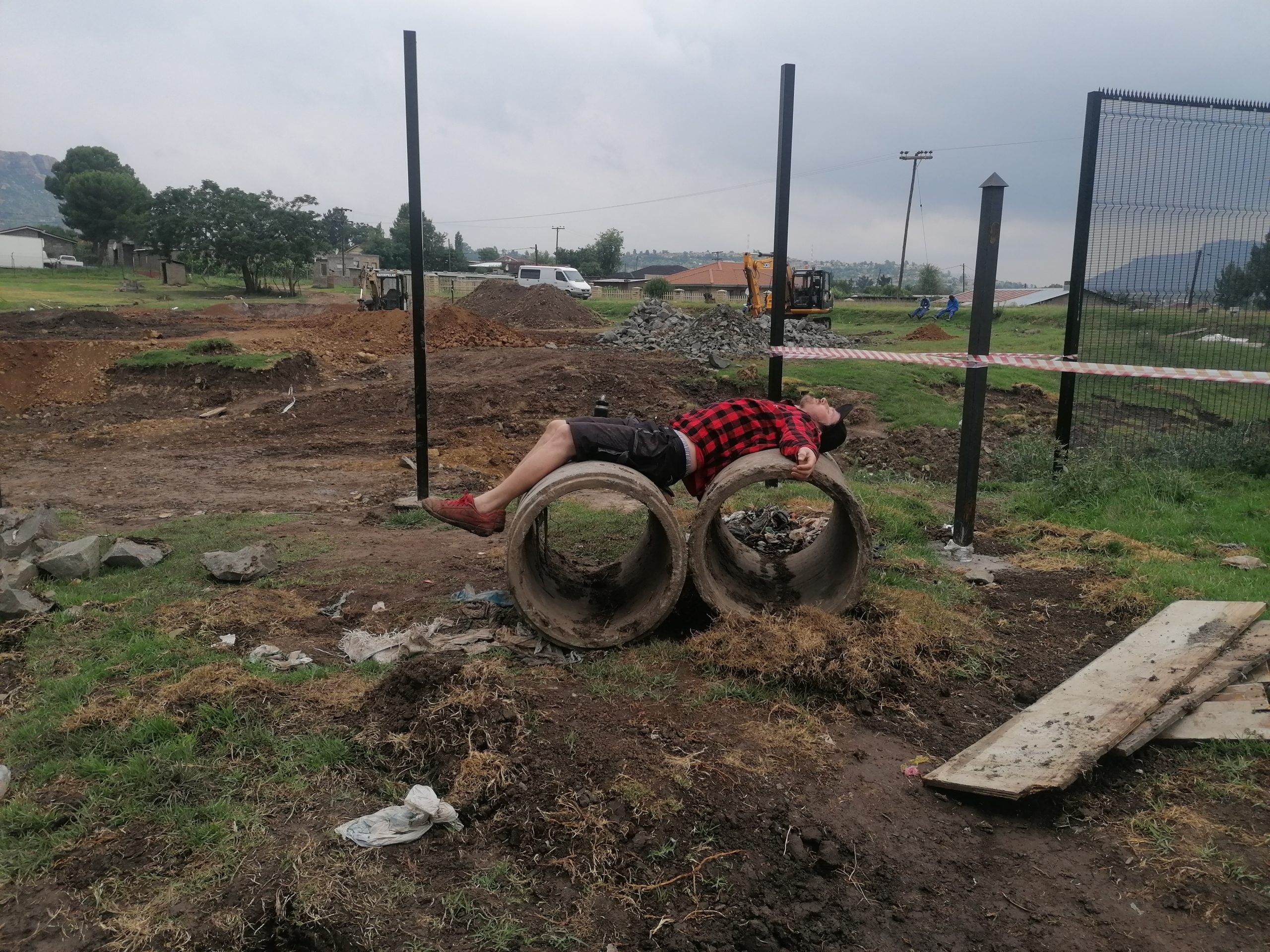 Afrika išlieka visiškai nesužavėta mūsų bandymų ir toliau mus spardo: per pirmą valandą aikštelėje suprantam, kad nei vienas iš mūsų planuotų darbų negali būt atliekamas taip, kaip mes jį planavome. Jei vakar turėjome ekskavatorius, tai nereiškia, kad ir šiandien juos turėsime. Jei vakar buvo drenažo vamzdžiai aikštelėje, tai nereiškia, kad ryte jei vis dar ten bus. Jei vakar vietinė komanda mum padėjo, tai nereiškia, kad ji tą darys ir šiandien.