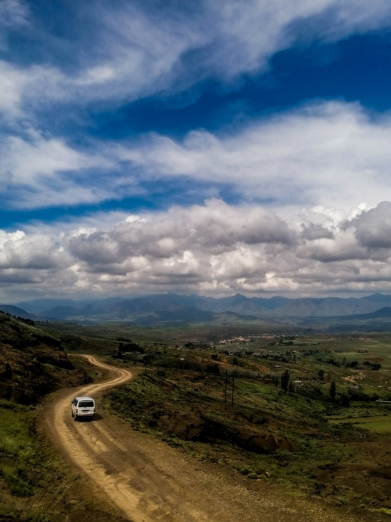 Po gerų 5 valandų tiesaus kelio plynais laukais, kurių vaizdą kartas nuo karto papildo iki horizonto besitęsiantys lūšnynai, privažiuojam kalnus ir čia mūsų laukė Lesotas. Kalnynuose gvyenanti tauta, kuri pasiskelbė karalyste ir viską aplink kolonizavę anglai ir olandai jų tuose kalnuose nejudino. Nejudino, nes nelabai apsimoka. Visa valstybė yra kalnuose, žemiausias taškas ~1400m. Resursų neturi daug. Turi truputi deimantų kasyklų, bet šiaip turi pirkti maistą iš kitų valstybių, nes neišsiaugina patys. Ir savo vandenį pardavinėja Pietų Afrikos Respublikai. Antra valstybė pasaulyje pagal sergamumą AIDS (grubiai ~30% moterų ir ~20% vyrų). BVP žmogui - ~15 kartų mažesnis nei Lietuvoje. Kingdom in the Sky, kaip jie patys save vadina.