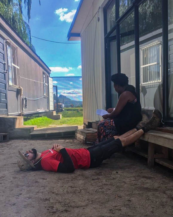 Australai praveda trumpą safety breafingą ir supažindina mus su mūsų situacija. Trumpai: mes esame krūva baltųjų iš Europos, skurdžiame Afrikos rajone, ir mūsų viena GoPro kamera ar JBL speakeris čia gali pramaitinti šeimą gana ilgą laiką. Patarimas paprastas – nesimaivyt, neprarast budrumo ir stebėti aplinką, nes po rajoną kalbos sklinda greitai. Pradžioje aplink trinasi vaikai, tada jau atvažiuoja jų broliai pažiūrėt, tada jau išgirsta jų pusbroliai ir klasiokai ir kažkurią dieną gali rasti užblokuotą kelią namo kur visi būsim gražiai paprašyti sudėti savo fancy dalykėlius į maišą. No hard feelings.
